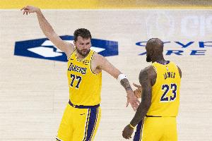 谈及东契奇砍下60分,詹姆斯说:”你们也都看到我们在场上的反应了,当他罚进最后一分拿到60分后,我们都非常高兴。但他就是顺其自然地得到的,他并没有强行去拿到这个分数。一切都显得顺其自然,当他在第三节开始展现火热手感时,他延续了得分状态,在第四节为我们打进几记关键球,包括一两次2+1,还有几记三分球。真的很了不起,大场面表现。”