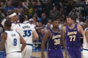 比赛第三节,湖人当家球星卢卡·东契奇和魔术中锋戈加·比塔泽发生口角,最后双方均被裁判吹罚技犯。