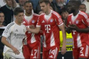欧冠1/4决赛首回合,皇马主场1-2不敌拜仁,比赛第60分钟,卡雷拉斯从身后踢倒奥利塞,奥利塞倒在边线外,主裁吹了犯规,拜仁后场任意球。这时居莱尔过来将奥利塞强行拖拽回场内,斯坦尼西奇和于帕梅卡诺当即赶来为奥利塞出头,不过奥利塞面带微笑十分平静,似乎还在安抚出头的队友。