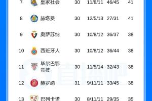 还剩7轮!西甲积分榜:皇马先赛距榜首6分,巴萨将战西班牙人