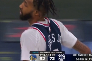 GIF-库里想造犯规直接被小琼斯切掉反击直接上篮