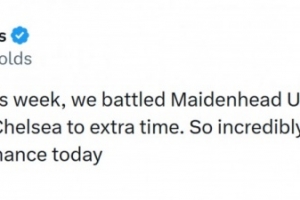 雷克瑟姆老板“死侍”瑞安·雷诺兹社媒发文:“三年前的这一周,我们与麦登赫德(目前第6级别球队)战平,而今天我们将切尔西逼进加时赛,我为雷克瑟姆今天的表现感到无比骄傲。”